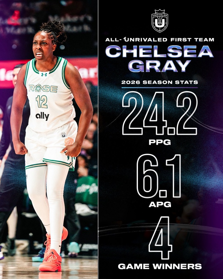 Unrivaled是由WNBA球星斯图尔特和科利尔创建的全新女篮联赛,旨在为WNBA球员提供一个休赛期在美国打球的机会,并且提供比目前WNBA更高的薪水。Unrivaled采用3V3全场赛制,2026赛季共8支球队。赛程是和WNBA错开的,每年1-3月在迈阿密以赛会制举办。